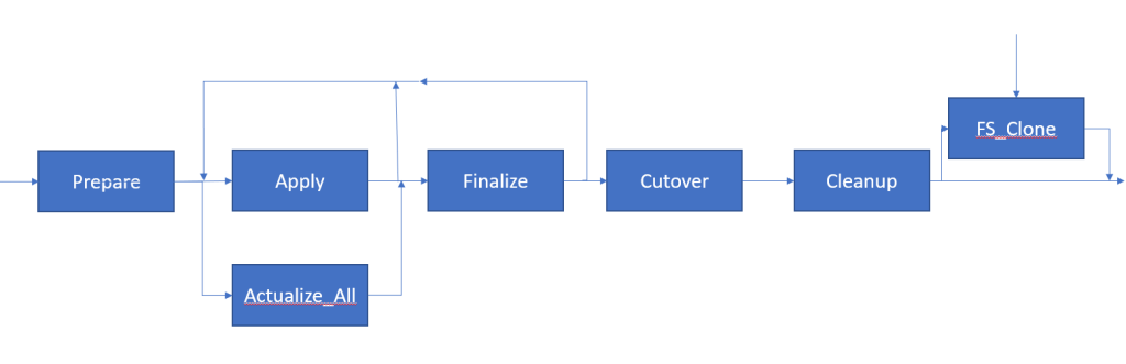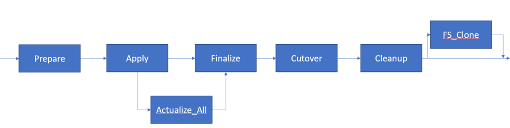 In other words, when you are not in a patch cycle (after cleanup and before prepare), you can run fs_clone or prepare. After running prepare, you can run apply, actualize_all, and finalize as much as you want as long as you end with finalize before doing cutover. And, of course, you can run abort at any time prior to cutover. You must always end with cleanup. This means if you have applied your patches and run the finalize phase and then find another patch or which to actualize the objects to cleanup the old editions, you can do so and just run another finalize phase. This has been confirmed by the EBS ATG group (the development group that owns adop) at Oracle. This means that you can test the extra time needed just for actualize_all by applying all your patches and completing a finalize phase then doing an actualize_all and finalize (realize that this will be high since certain activities will be repeated in the second finalize). Of course this will not test the impacts from concurrency so it still could run longer in another environment.